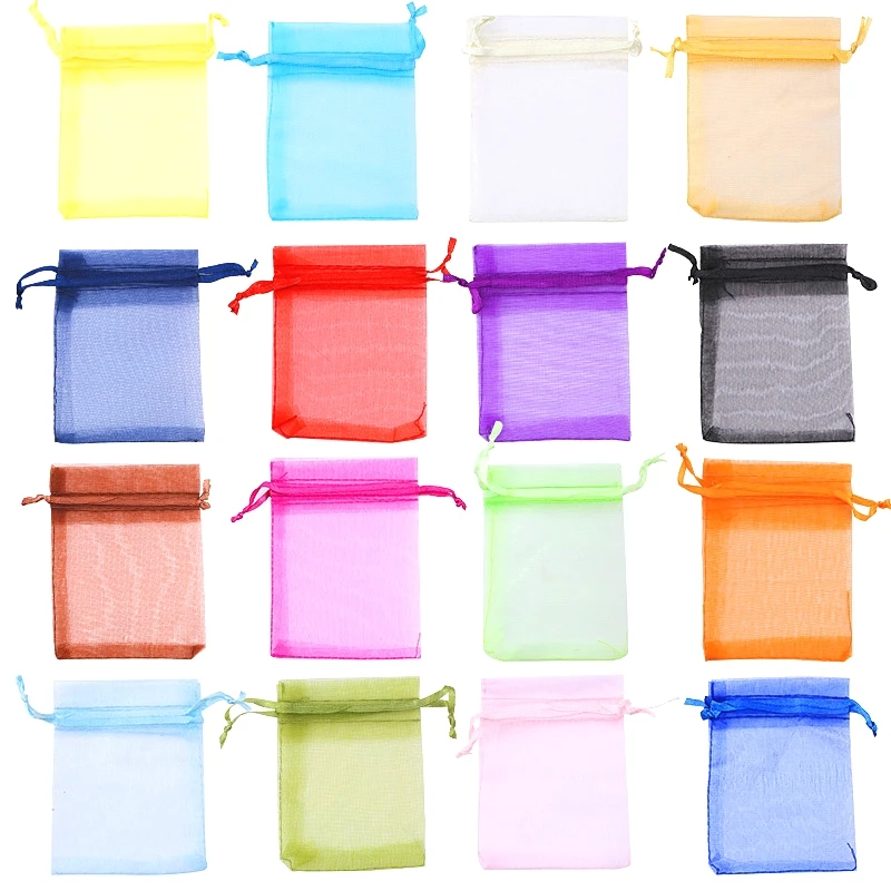 Name: Bolsas con cordón de Organza para joyería, embalaje de joyería, regalos de boda, 22 colores, 5x7, 7x9, 9x12cm, 50 unids/lote