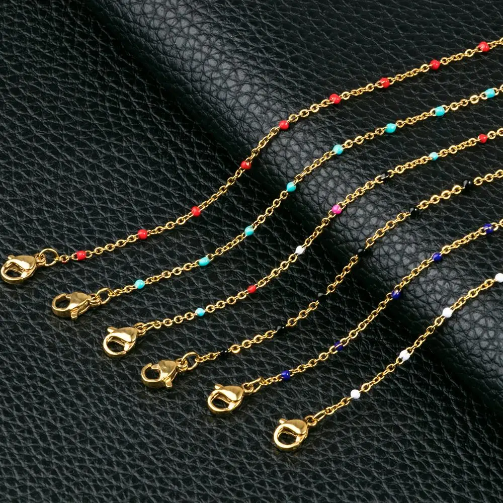 Name: Pulsera tobillera de pies coloridos de acero inoxidable, brazalete con cuentas esmaltadas por satélite de 2mm, novedad