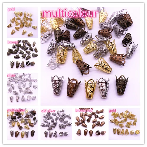 Name: 50 Uds 11*16mm chapado en oro plata hueco flor Amaryllis forma final separador topes para cuentas encantos para accesorios de fabricación de la joyería