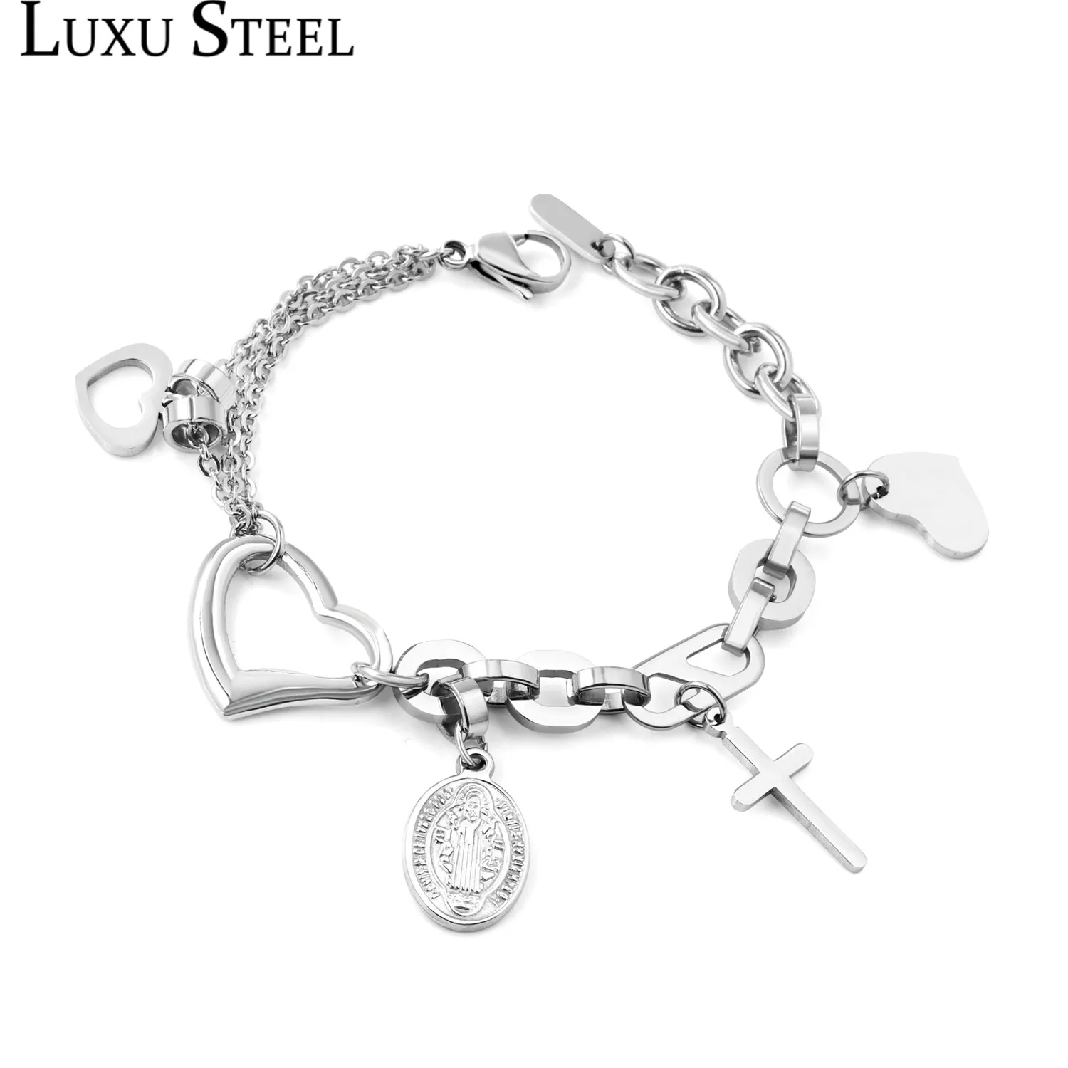 Mejor Pulseras y brazaletes de LUXUSTEEL Official Store por LUXUSTEEL-pulseras de cadena de eslabones para mujer, colgante de corazón de acero inoxidable, joyería redonda, moda 2020
